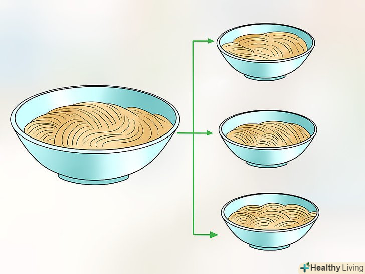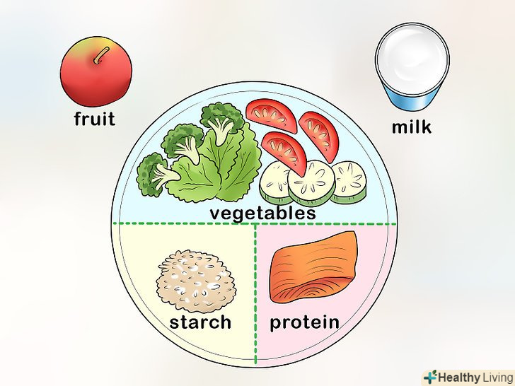 Обмежте кількість їжі при кожному прийомі їжі.Один з важливих способів, що дозволяють контролювати рівень цукру в крові і запобігати його різке підвищення, полягає в тому, щоб обмежувати розміри порцій. Краще з'їдати більшу кількість менших порцій протягом дня, ніж щільно їсти кілька разів, — в цьому випадку вашому організму буде легше підтримувати нормальний рівень глюкози в крові.[22]- Особливо важливо не їсти занадто багато одного виду їжі. Збалансоване харчування також допомагає підтримувати нормальний рівень глюкози.