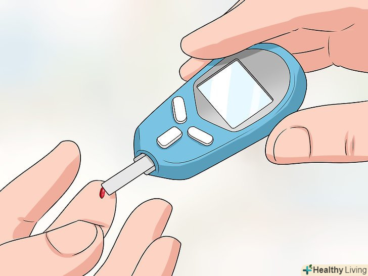 РегулярноПеревіряйте рівень глюкози (цукру) в крові.після того як вам поставлять діагноз діабету другого типу, необхідно перевіряти вміст цукру в крові. Найкраще робити це щоранку в один і той же час перед їжею. Нанесіть краплю крові на тестову смужку, а потім помістіть її в глюкометр, щоб отримати точне значення. Це дозволить вам оцінити, чи підтримує ваш організм необхідний рівень цукру в крові, або необхідно прийняти інсулін.[3]- Для перевірки рівня інсуліну потрібні глюкометр, тестова смужка і інструмент для проколювання шкіри. Попросіть лікаря порекомендувати вам відповідний глюкометр.