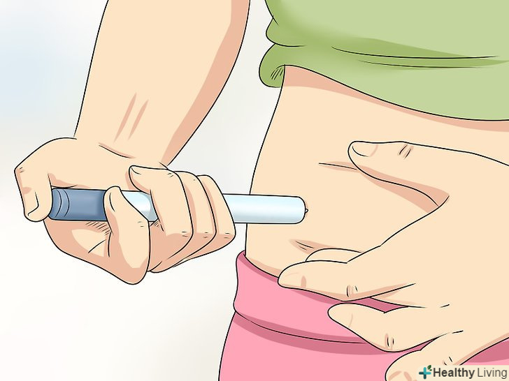 При необхідностіРобіть ін'єкції інсуліну.при діабеті другого типу вам можуть призначити ін'єкції інсуліну. Ваш лікуючий лікар розповість, коли і як слід робити ін'єкції інсуліну. Оскільки правильне дозування залежить від рівня цукру в крові, лікар забезпечить вас шкалою, по якій ви зможете визначити, скільки інсуліну слід ввести, грунтуючись на результатах аналізу рівня глюкози.[4]- Є кілька способів введення інсулін. Можна використовувати шприц, інсулінову шприц-ручку або інсулінову помпу, яку зазвичай застосовують в крайніх випадках.