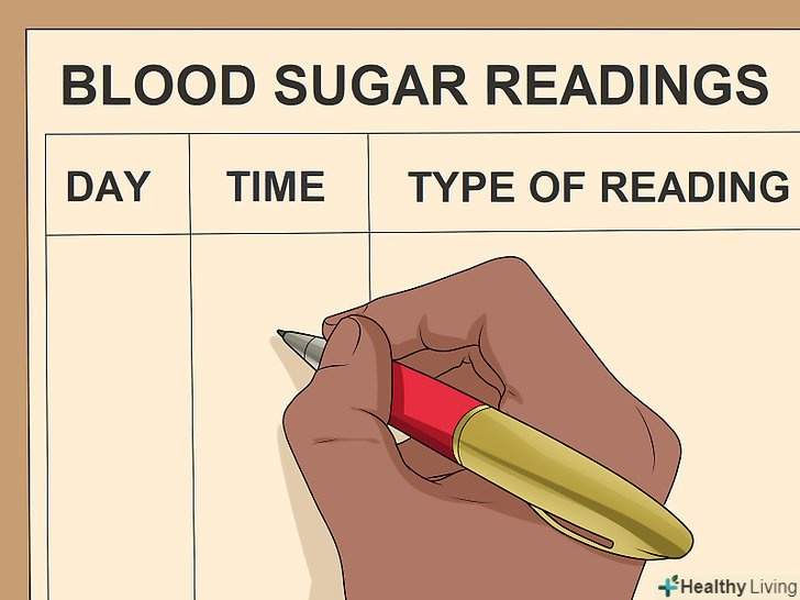 Подивіться і запишіть результат.- Деякі діабетичні глюкометри зберігають в пам'яті ваші показання. В інших же, вам доведеться записувати свої свідчення окремо. Переконайтеся, що ви звернули увагу на день, час і тип показань. Наприклад, ви робили пробу рано вранці? Це показання натщесерце. Якщо ви робили пробу через 2 години після їжі, то це 2-годинне післяобіднє показання.