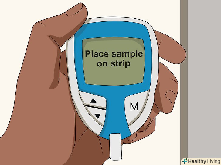 Зачекайте, поки діабетичний глюкометр покаже вам, що потрібно помістити в нього краплю крові на смужку.- Наприклад, може з'явитися напис" розмістіть пробу на смугу", або символ, який виглядає як крапля рідини.