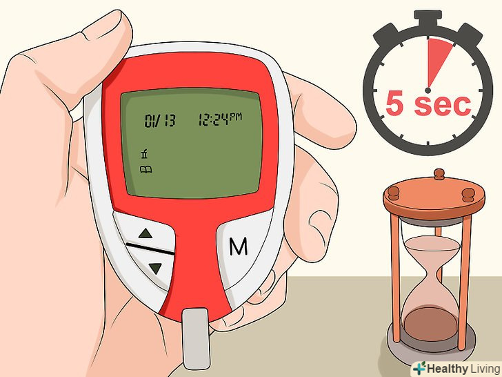 Дочекайтеся результатів.- Лічильник почне зворотний відлік в секундах після того, як проба потрапить на смугу і вимірювач виявить її. Для нових глюкометрів достатньо 5 секунд, старішим може знадобитися від 10 до 30 секунд. Лічильник видасть звук або гудок, коли буде готовий ваш результат.