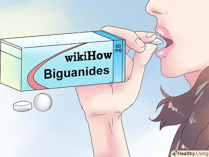 Спробуйте приймати меглітиніди.ці препарати збільшують вироблення інсуліну в підшлунковій залозі. Вони діють протягом години після прийому. Зазвичай їх приймають за півгодини до їжі, щоб знизити ризик розвитку гіпоглікемії.- Дані препарати використовуються для того, щоб знизити рівень цукру в крові в ході обміну речовин. Рекомендоване дозування становить від 500 міліграмів до 1 грама 1-2 рази на день, залежно від рівня глюкози в крові.[5]