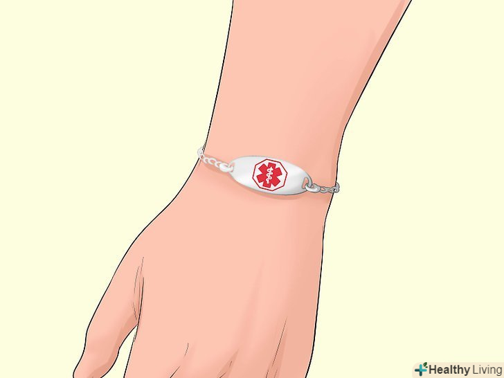 Носіть браслет з медичною інформацією.у надзвичайній ситуації це дозволить медичному персоналу Дізнатися про те, що ви страждаєте діабетом. Це дуже важливо, так як в разі гіпоглікемії ви можете втратити свідомість. Якщо той, хто буде надавати вам першу допомогу, буде знати про вашому діабеті, то його дії можуть виявитися більш ефективними. Подумайте про носіння інформаційного браслета під час тренувань на випадок виникнення надзвичайної ситуації.[22]