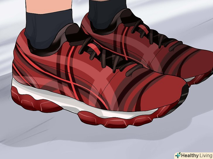 Придбайте хороше спортивне взуття.якщо ви страждаєте діабетом, то ви знаєте, що ваші рани довго гояться і легко інфікуються. Якщо ви будете займатися в поганій взуття, то на ногах можуть з'явитися мозолі і потертості, які потенційно здатні привести до серйозних ускладнень. Щоб цього уникнути, завжди дбайливо ставитеся до своїх ніг під час тренувань.[5]- Купуйте взуття з хорошими амортизуючими властивостями. Вона повинна добре сидіти на нозі. Якщо пара взуття буде занадто вільною або тісною, то стане натирати ноги і призведе до утворення мозолів. Приміряючи пару взуття, не забудьте пройтися і переконатися в тому, що вона вам ніде не тисне і не тре.
