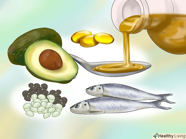 Вживайте корисні жири.зовсім неправда, що жири необхідно виключати зі своєї дієти. Тоді як насичених і трансжирів дійсно слід уникати, моножири і поліненасичені жирні кислоти є корисними для здоров'я. Вони здатні знижувати рівень холестерину і сприяти нарощуванню м'язової маси. Непоганими джерелами корисних жирів є такі види їжі:[32]- Авокадо;