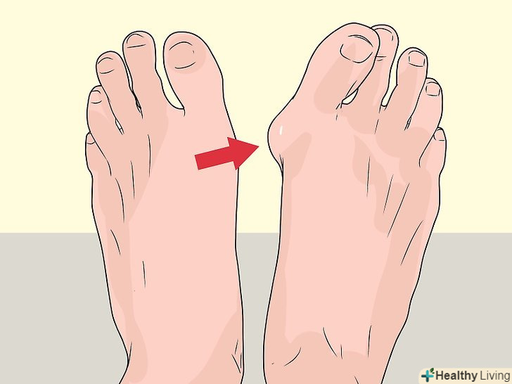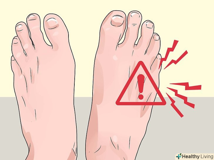 Перевірте, чи не розвинулася у вас деформація пальців.якщо у людини розвивається м'язова слабкість ступень і змінюється хода, йому доводиться по-іншому ставити ноги при ходьбі і переносити додаткове навантаження на пальці. Надлишковий тиск і аномальне вагове навантаження нерідко призводять до деформації пальців, такий як молоткообразное викривлення.[6] Молоткообразное викривлення виникає, коли змінюється форма одного з трьох середніх пальців стопи. Патологія розвивається в дистальному суглобі, в результаті чого палець згинається і за формою нагадує молоток. Крім молоткообразного викривлення та інших деформацій, нерівна хода і порушення рівноваги часто призводять до перерозподілу тиску, що припадає на різні області ступні, що веде до надмірного навантаження на певні ділянки підошви. В результаті на ступнях утворюються трофічні виразки, а якщо тканини втягуються в інфекційний процес, це може привести до цілого ряду серйозних проблем.- У деяких випадках молоткообразное викривлення пальця зникає само собою, проте в більшості випадків для виправлення цього дефекту потрібна операція.