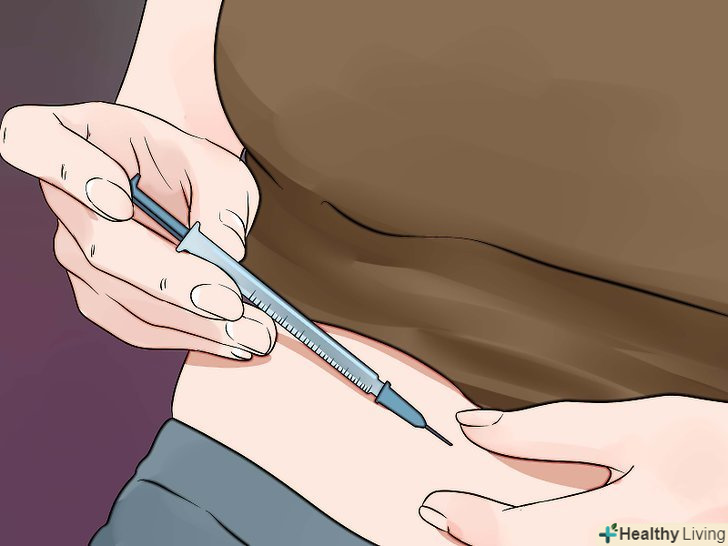 Робіть ін'єкції інсуліну при діабеті 1 типу.при даному виді діабету цей метод є фактично єдиним ефективним лікуванням, хоча його застосовують також і для лікування діабету 2 типу і гестаційного діабету. При цьому використовують чотири різних види інсуліну. Ваш лікар визначить, який вид інсуліну дозволить найбільш ефективно контролювати рівень цукру в крові. Вам можуть призначити інсулін одного типу або комбінацію декількох видів, які слід приймати в різний час доби.[44] крім того, лікар може порекомендувати користуватися інсуліновою помпою, щоб підтримувати постійний рівень інсуліну 24 години на добу.[45]- Швидкодіючий інсулін приймають перед їжею, його часто поєднують з інсуліном тривалої дії.