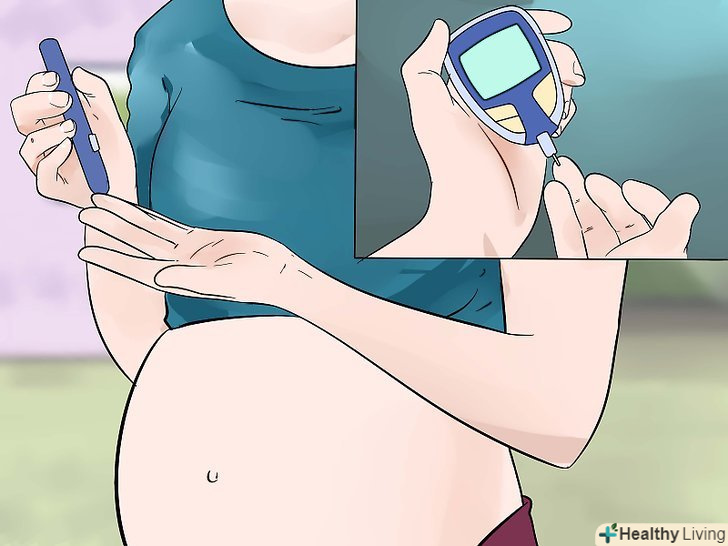 Перевірте, чи немає у вас гестаційного діабету під час вагітності. [12] Часто гестаційний діабет протікає без будь-яких симптомів. Зважаючи на це слід здати аналіз на гестаційний діабет, якщо ви ставитеся до групи ризику. Це захворювання дуже небезпечно, оскільки воно вражає як жінку, так і організм її дитини. Гестаційний діабет може мати довготривалі наслідки для дитячого організму, тому його необхідно своєчасно діагностувати і лікувати.- Деякі жінки при гестаційному діабеті відчувають сильну спрагу, їм необхідно часто мочитися. Однак ці симптоми характерні і для звичайної вагітності.[13]