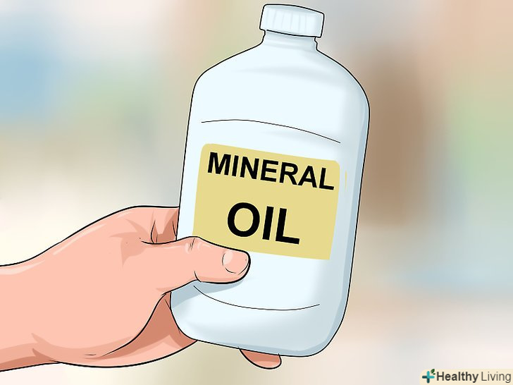 Приймайте мінеральне масло.рідке мінеральне масло покриє кал жирною, водонепроникною плівкою. Завдяки цьому процес дефекації пройде легше.[49] знайти мінеральне масло можна в більшості аптек. Як правило, його рекомендують приймати з молоком, соком або водою.[50]- Не приймайте мінеральне масло без попередньої консультації з гастроентерологом, якщо у вас є харчова або медикаментозна алергія, серцева недостатність, апендицит, проблеми з ковтанням, хвороби нирок, болі в животі, вас нудить або рве, або якщо з заднього проходу йде кров.[51]