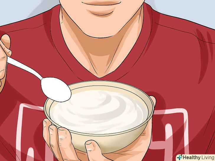 Включайте йогурт в свій щоденний раціон.йогурт містить живі та активні культури бактерій (пробіотики), які створюють належні умови для функціонування вашої травної системи. Випивайте або з'їдайте склянку йогурту щодня.[31]- Вважається, що біокультури в йогурті змінюють мікрофлору в шлунку і скорочують час, який потрібен організму на перетравлення їжі.