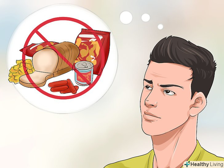 Виключіть зі свого раціону оброблені продукти.оброблені продукти можуть сприяти хронічному запору. Ці продукти мають високий вміст жирів і низький вміст клітковини. Крім того, вони не мають високої поживної цінності. Виключіть зі свого раціону наступні продукти:[33]- Оброблені або» збагачені " зернові продукти. Білий хліб, випічка, макаронні вироби і каші швидкого приготування часто готують з борошна, позбавленої клітковини і поживної цінності. Купуйте цільнозернові продукти.