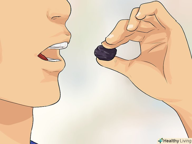 Їжте чорнослив. Чорнослив містить велику кількість клітковини. Він також містить сорбіт, який допомагає запобігти запору.[13] сорбіт є м'яким стимулятором товстої кишки, який допомагає зменшити час проходження стільця і, отже, зменшує ризик запорів.- Якщо вам не подобається смак або вид чорносливу, сливовий сік може стати більш прийнятною альтернативою. Проте сливовий сік містить менше клітковини, ніж чорнослив.