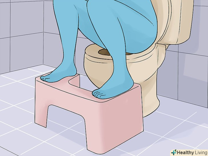 Змініть позу.аборигени, як правило, випорожнюються, сидячи навпочіпки. Знання цього факту може допомогти нам.[46] коли ви сидите на унітазі, то не ставте ноги на підлогу. Замість цього використовуйте підставки для ніг по краях унітазу або забирайтеся на унітаз з ногами.[47]- Підтягніть коліна якомога ближче до грудей, наскільки це можливо. Така поза збільшить тиск на кишечник і полегшить проходження стільця.