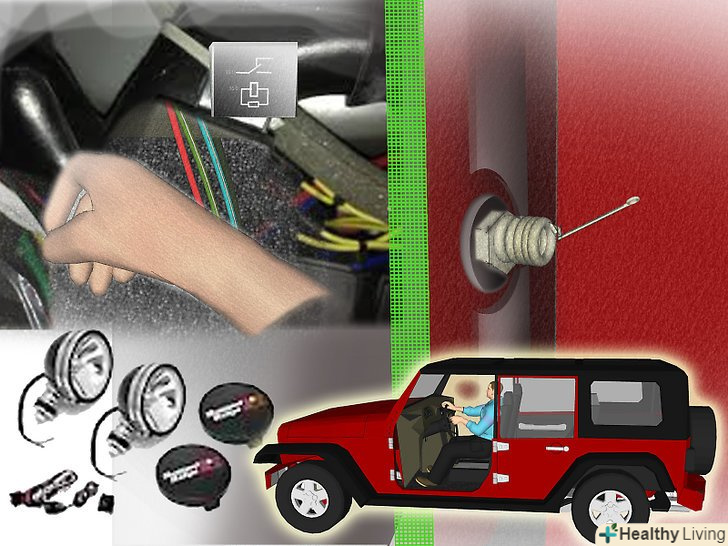 Вимкніть підсвічування всередині салону.коли ви зніміть двері з Jeep, підсвічування всередині салону залишиться включеною. Є кілька способів її виключення.- Витягніть запобіжник підсвічування. Він розташований в коробці запобіжників поруч з важелем ручного гальма. Витягніть запобіжник, що відповідає за датчик "закритих дверей", щоб відключити підсвічування салону і попереджувальний сигнал.