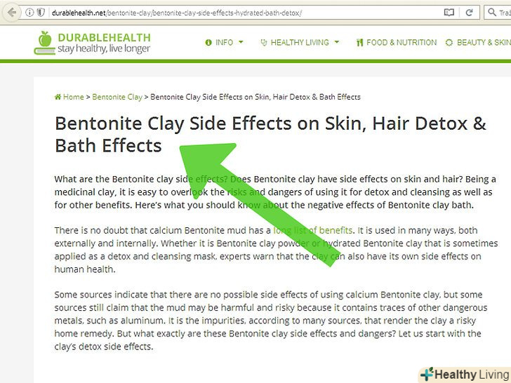 Врахуйте можливі ризики.Будьте обережні і не використовуйте занадто багато бентонітової глини. Надмірна кількість цього засобу може викликати електролітичний, або мінеральний дисбаланс в організмі. Це загрожує серйозними проблемами зі здоров'ям, що суперечить цілям промивання кишечника. Обов'язково проконсультуйтеся з лікарем, перш ніж застосовувати даний засіб. Бентонітова глина підходить не всім, тому слід порадитися з фахівцем. Лікар зможе визначити, чи виявиться глина корисною у вашому випадку, і порадить, як правильно її використовувати.- Завжди дотримуйтесь інструкцій із застосування.[19]