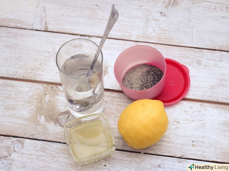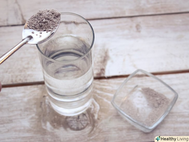 Приготуйте Очищуючий засіб.для цього відміряйте одну чайну ложку (з гіркою) псілліума у вигляді темно-жовтого або коричневого порошку і змішайте її з однією чайною ложкою порошку бентонітової глини в порожньому склянці. Потім додайте в склянку 240 мілілітрів води або чистого натурального яблучного соку і як слід перемішайте, щоб повністю розчинити порошок. Відразу ж випийте суміш, поки порошок не осів.- Даний засіб слід відразу ж запити ще однією склянкою (250 мілілітрах) води або яблучного соку.
