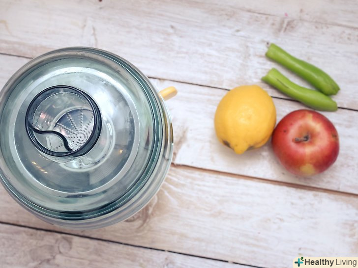 Спробуйте очистити кишечник за допомогою зелених продуктів.якщо ви не знаєте, з якого рецепта краще почати, спробуйте використовувати зелень. Поріжте два яблука, чотири стебла селери без листя, один огірок і шість листя городньої капусти, і покладіть все в блендер або соковижималку. Додайте столову ложку дрібно нарізаного свіжого кореня імбиру і лимонний сік, після чого подрібніть все в соковижималці або блендері. Приємного апетиту![16]- Якщо ця суміш здасться вам занадто кислою, спробуйте додати чайну ложку (5 мілілітрів) меду, щоб підсолодити її.