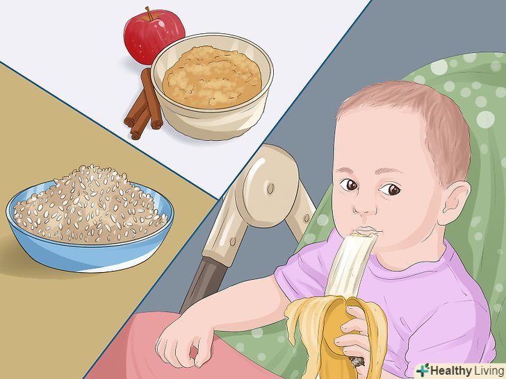 Спробуйте спеціальну дієту при дитячій діареї.включіть в раціон дитини більше клітковини, що дозволить знизити симптоми діареї. Спеціальна дієта стане відмінним варіантом у вашому випадку. При дотриманні цієї дієти необхідно годувати дитину легкою їжею, такий як банани, рис (коричневий рис), яблучне пюре і тости (з цельзерновой борошна). Вважається, що ці продукти легко засвоюються дитячим організмом. Деякі дослідження показують, що діти швидше позбавляються від діареї, якщо їдять легко засвоювану їжу. Ось деякі інші легко засвоювані види продуктів, які можна запропонувати дитині:[3]- Макарони;
