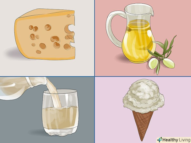 Давайте дитині одну порцію продуктів з високим вмістом жиру в день.якщо час від часу давати дитині висококалорійну їжу, то це також допоможе зупинити діарею. Особливо це допомагає в тому випадку, якщо дитина почала страждати діареєю ще в ясельному віці, що зазвичай проявляється у вигляді легкої форми хронічної діареї. Наступні продукти вважаються найбільш підходящими варіантами:- Жирне молоко;