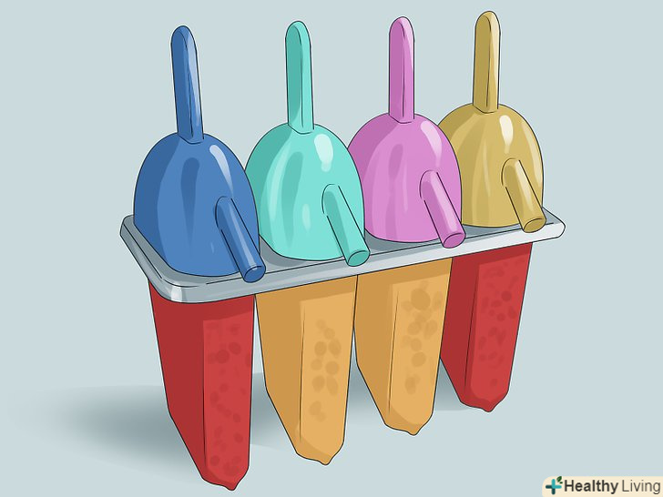 Давайте дитині фруктовий лід.протягом дня можна також давати дитині один або два заморожених льодяника на основі фруктових напоїв, щоб наситити організм рідиною.[7] вибирайте фруктові льодяники з низьким вмістом цукру або в спеціальних формочках самостійно приготуйте кілька штук. Наповніть льодяники водою і всипте всередину шматочки фруктів, щоб вони напевно точно сподобалися дитині.