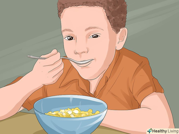 Нехай день малюка починається з миски пластівців з молоком.Миска пластівців з молоком на сніданок — ще один прекрасний спосіб наситити організм дитини рідиною і відновити водяний баланс, щоб уникнути зневоднення.[8]- Попросіть дитину вибрати улюблений вид пластівців і залийте їх половиною склянки молока, а також давайте пити молоко протягом дня.