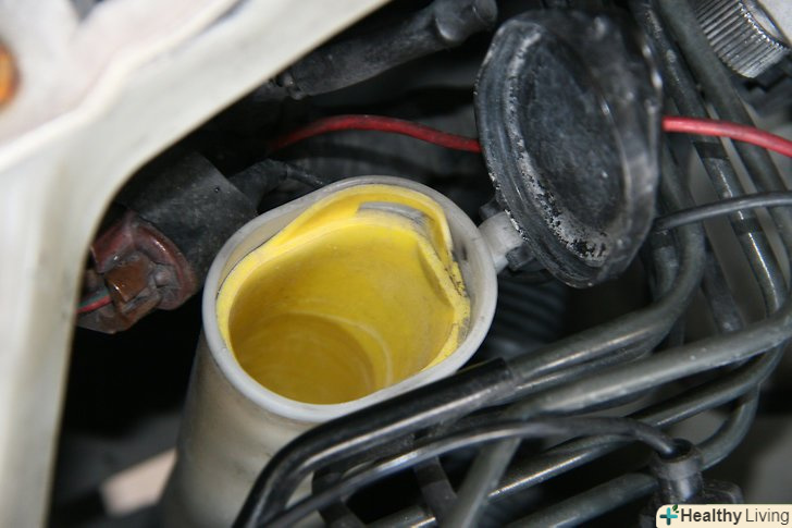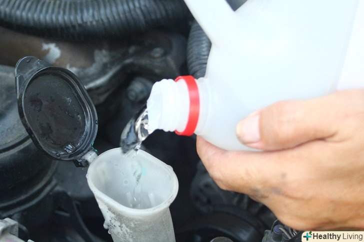 Якщо необхідно, долийте омиває рідини в бачок.- Змішайте рідину у відповідній інструкції пропорції. Залийте її в бачок до необхідного рівня. Щоб полегшити процес заливки, використовуйте воронку.