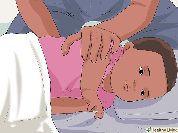 Необхідно, щоб дитина лежала на боці.лежачи на спині, маленькі діти можуть задихнутися блювотними масами, тому стежте, щоб дитина лежала на боці.[40]- Дітей старшого віку можна покласти на подушку, підперши нею верхню половину тіла.