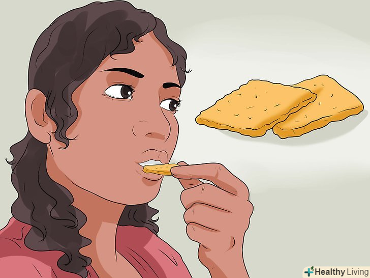 Приймайте їжу невеликими порціями.занадто велика кількість їжі може спровокувати нудоту і блювоту. Постарайтеся потроху перекушувати протягом усього дня, замість того, щоб їсти рідко і багато.[10]- Їжте продукти, що не обтяжують шлунок, такі як крекери, тости, картопля, рис. Гарні також банани і яблучне пюре. Ці продукти легко перетравлюються шлунком.[11] для отримання достатньої кількості білків можна вживати також запечену курку або рибу, проте не додавайте в них приправи і спеції.