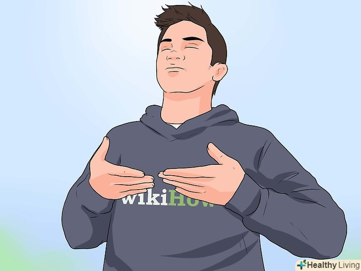 Постарайтеся глибоко дихати.глибоке дихання сприяє насиченню вашого організму таким необхідним йому киснем. Крім посиленої вентиляції легенів, для зниження почуття нудоти лікарі рекомендують також глибоко дихати животом.- Покладіть долоню посередині живота. Другу долоню помістіть на груди.