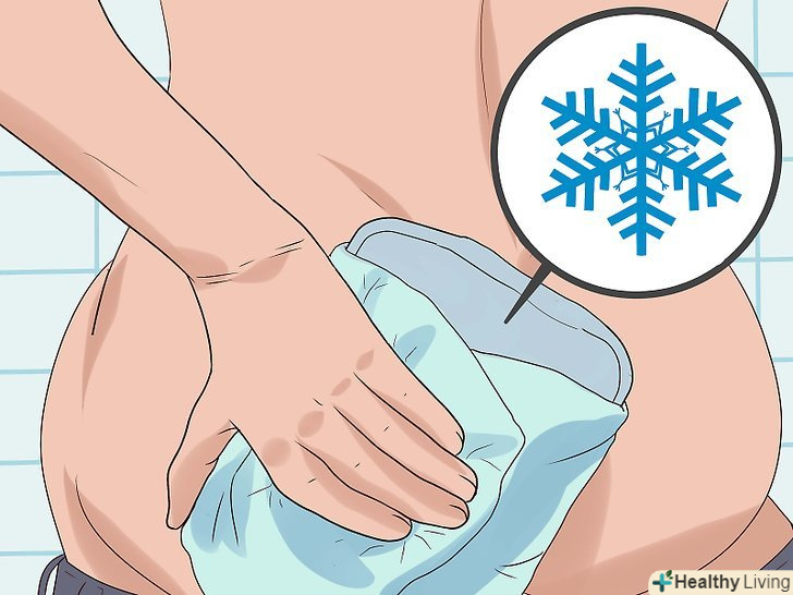 Прикладайте до геморою міхур з льодом.потримайте міхур з льодом в морозильній камері, щоб він як слід замерз. Не прикладайте його безпосередньо до шкіри. Замість цього загорніть міхур в чистий рушник або ганчірку і обережно прикладіть до геморою. Не прикладайте компрес протягом тривалого часу, інакше він може пошкодити шкіру. Найкраще докласти міхур на кілька хвилин, потім зняти його, почекати, поки шкіра прогріється до кімнатної температури, і прикласти знову.- Це допоможе зменшити запалення і знизить біль і набряк.[5] крім того, холод звузить судини, що допоможе зупинити кровотечу.
