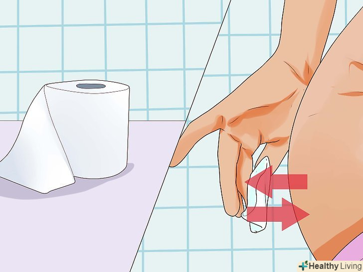 Користуйтеся м'яким туалетним папером і не розчісуйте область заднього проходу.жорстким туалетним папером можна подряпати шкіру і тим самим викликати ще більше роздратування. Щоб полегшити біль і зменшити роздратування, використовуйте вологі гігієнічні серветки. Можна також використовувати гігієнічні серветки з гамамелісом, гідрокортизоном, алое або вітаміном E. не витирайте область заднього проходу занадто сильно, щоб уникнути роздратування і не посилити кровотечу. Замість цього обережно промакивайте цю область.- Розчісування лише посилить кровотечу і роздратування і створить додаткове навантаження на і без того хворобливий геморой. Це може призвести до інфекції.