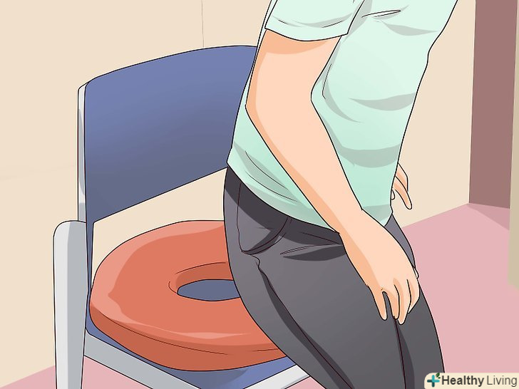 Знизьте навантаження на геморой.це допоможе зменшити тиск на гемороїдальні вузли. Вживайте більше харчових волокон, щоб пом'якшити стілець і запобігти запори. Їжте фрукти, овочі та продукти з цільних зерен або приймайте харчові добавки (добова норма харчових волокон повинна становити 25 грамів для жінок і 38 грамів для чоловіків). Пийте достатньо рідини, регулярно відвідуйте вбиральню і намагайтеся при цьому не напружуватися. Крім того, не слід довго сидіти на унітазі, так як це підсилює тиск на гемороїдальні вени і викликає кровотечу. Навантаження на геморой допомагають знизити ходьба і фізичні вправи.[11]- Користуйтеся подушкою-бубликом, щоб перерозподіляти вагу тіла і зменшувати тиск в хворій області. Сідайте в центр подушки, так щоб область заднього проходу перебувала над отвором. Однак іноді це призводить до зворотного ефекту і підвищує тиск на область заднього проходу, тому перестаньте користуватися такою подушкою, якщо симптоми погіршаться, кровотеча не припиниться або відновиться.[12]