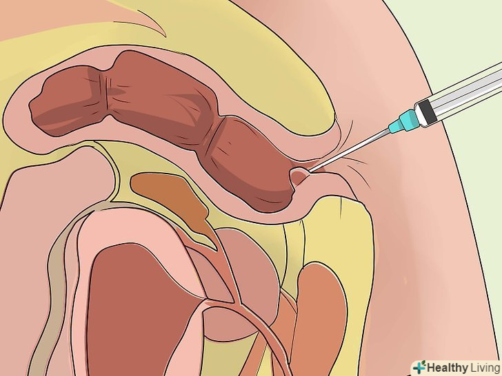 Отримайте ін'єкцію (склеротерапію) при внутрішньому геморої.При цьому лікар вставить в задній прохід пластиковий пристрій (аноскоп), яке дозволить йому оглянути пряму кишку. Через аноскоп лікар введе голку і зробить ін'єкцію розчину в основу геморою. Це може бути 5-відсотковий розчин фенолу в олії, рослинне масло, хінін і розчин гідрохлориду сечовини або гіпертонічної солі. Ці речовини викликають скорочення вен.- Вважається, що склеротерапія менш ефективна, ніж лігування гумовими кільцями.[17]