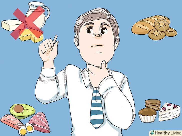 Виключайте з раціону по одній групі продуктів за раз, щоб з'ясувати причину.найчастіше підвищене газоутворення викликає їжа, яка містить важко перетравлюються вуглеводи, харчові волокна або лактозу. Спробуйте не вживати молочні продукти протягом тижня і подивіться, чи полегшаться симптоми. Якщо газоутворення не зменшиться, спробуйте не їсти квасолю, брокколі, цвітну і городню капусту.[3]- Якщо ви продовжуєте страждати від газів, спробуйте скоротити споживання харчових волокон. Перевірте, чи допоможе зменшення кількості продуктів з цільних зерен і висівок.