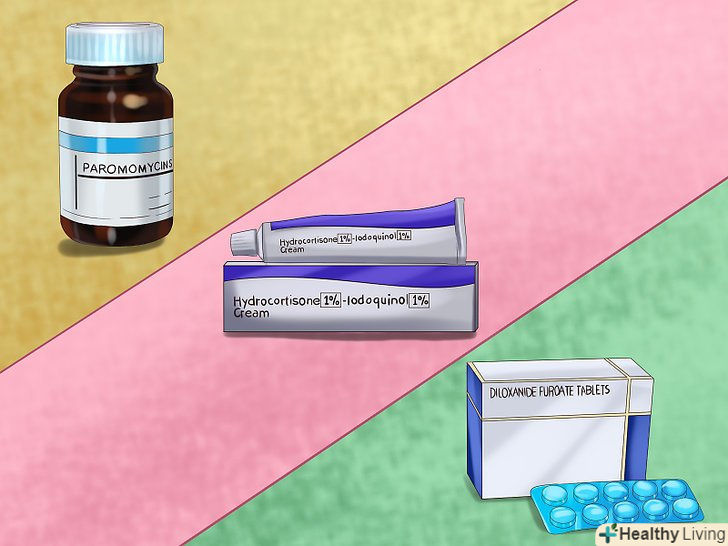 Запитайте свого лікаря про ліки.навіть якщо у вас немає явних симптомів інфекції, лікування необхідно для запобігання можливих ускладнень і забезпечення безпеки оточуючих вас людей. Звичайно ж, будь-який хворий, у якого спостерігаються симптоми амебіазу повинен пройти лікування.[5]- Серед усього іншого, для лікування амебіазу використовують такі ліки: Паромоміцин, Йодоквінол і Дилоксанід фуроат. Запитайте свого лікаря про ці ліки.