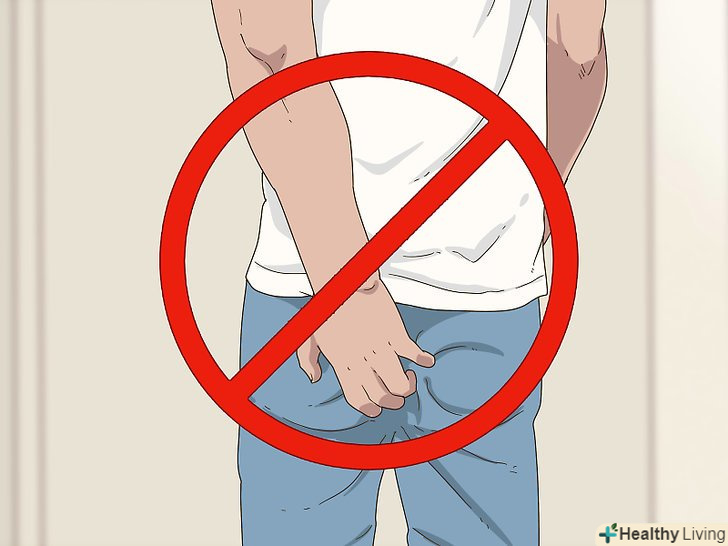 Не чешіть біля ануса.[10] оскільки самки глистів рухаються ближче до ануса і відкладають там яйця, у вас може виникнути роздратування і свербіж в цьому місці. Людям, а особливо дітям, можливо, захочеться почухати біля ануса, щоб вгамувати свербіж. Постарайтеся утриматися від спокуси, адже в іншому випадку ваші руки тут же стануть рознощиками яєць, які залишаться скрізь, до чого ви доторкнетеся. Щоб зменшити поширення і передачу яєць, не чешіть біля ануса.- Також не намагайтеся вгамувати свербіж шляхом нанесення крему або мазі на область ануса. Це може привести до того, що самки відкладуть яйця далі в прямій або товстій кишці, через що ситуація лише посилиться.