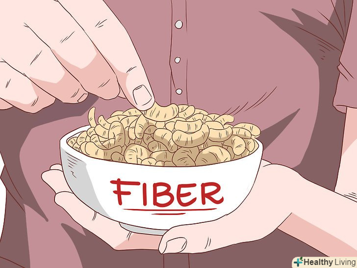 Їжте більше харчових волокон .достатня кількість харчових волокон полегшує спорожнення кишечника і допомагає запобігати і лікувати геморой. Намагайтеся щодня з'їдати близько 25 грамів харчових волокон. Для цього включіть в свій раціон побільше фруктів, овочів і продуктів з цільних зерен.[2]- Якщо вам не вистачає харчових волокон, спробуйте приймати їх з харчовими добавками. Якщо ви не в змозі досягти денної норми, спробуйте заповнити недолік харчових волокон за допомогою харчових добавок.[3]