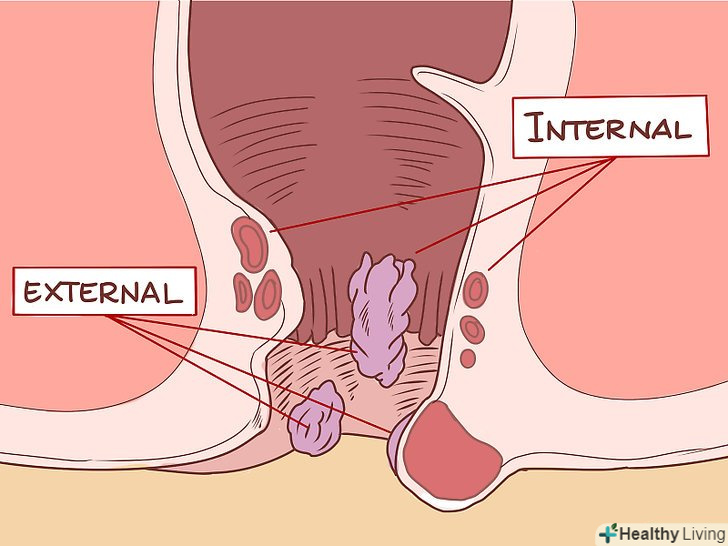 Якщо внутрішній геморой супроводжується болем, зверніться до лікаря.внутрішній геморой рідко викликає біль, оскільки в нижньому відділі прямої кишки знаходиться дуже мало больових рецепторів.[8] зазвичай біль виникає лише в результаті випадання геморою, коли він виступає з анального отвору. Випадання геморою може пройти само собою, або його можна вправити назад. Біль при випав геморої зазвичай означає, що ви не можете самостійно втягнути його назад, і вам потрібна допомога лікаря.[9]- Можливі також гострий свербіж і подразнення.