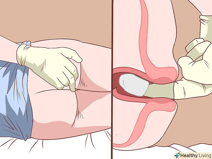 Використовуйте свічки.при викликаних гемороєм болях можуть допомогти свічки. Лікування свічками допомагає зменшити розміри внутрішнього геморою, причому лікарський засіб доставляється безпосередньо до хворого місця в прямій кишці. У свою чергу, зменшення розмірів геморою дозволяє знизити біль і дискомфорт. У продажу є безрецептурні свічки від геморою, які містять ліщину та інші інгредієнти.- Врахуйте, що свічки необхідно вставляти в задній прохід.[11]