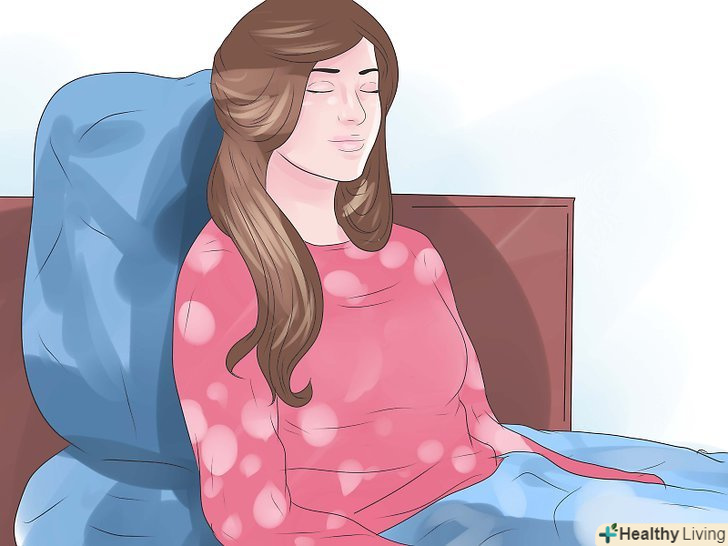 Намагайтеся перебувати у вертикальному положенні.лежачи в ліжку, підкладіть під голову подушки, щоб ваша голова була піднята під кутом від 45 до 90 градусів. Також підніміть стопи вище рівня тіла (для цього також скористайтеся подушками або згорнутим ковдрою). Вертикальне положення допоможе вам отримати користь від природної сили тяжіння і стримати блювоту. Крім того, піднімаючи стопи вище тулуба, ви покращуєте кровообіг.