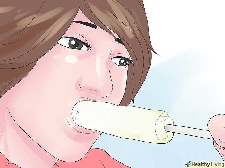 Посмокчіть кубик льоду або фруктовий лід.Лід надасть відразу три корисних ефекту: по-перше, в організмі почне поступово відновлюватися водний баланс; по-друге, лід притупить блювотний рефлекс; по-третє, це допоможе вам позбутися неприємного присмаку в роті після блювоти.