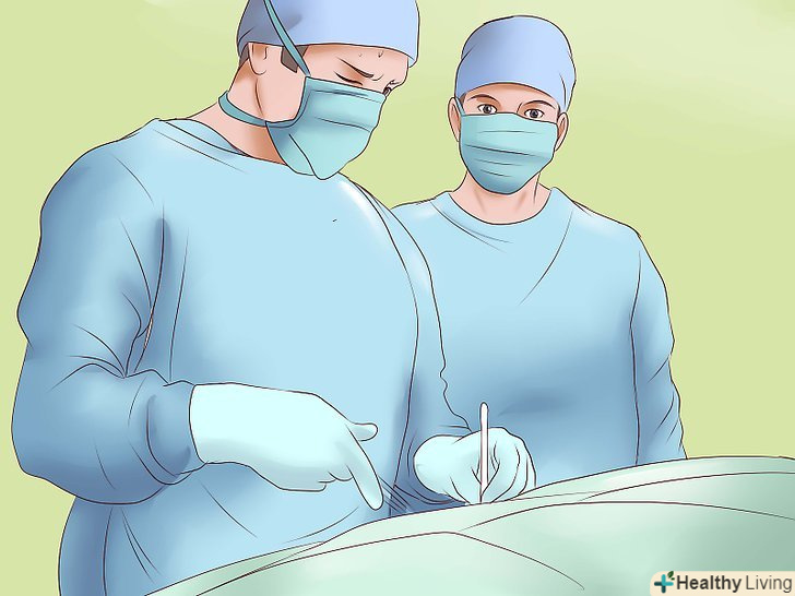 Видаліть жовчний міхур хірургічним шляхом.якщо жовчні камені утворювалися у вас неодноразово, лікар може порекомендувати холецистектомію, тобто операцію з видалення жовчного міхура.[5]- Жовчний міхур не є життєво необхідним органом в строгому сенсі цього поняття, тому його можна видалити без подальших серйозних ускладнень. Після видалення жовчного міхура жовч буде потрапляти безпосередньо з печінки в тонку кишку, що може викликати діарею. Крім того, щоб уникнути інших ускладнень слід обмежити споживання жирів.