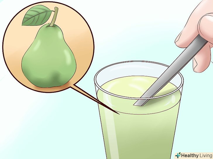 Спробуйте пити грушевий сік.Візьміть 1/2 склянки (125 мілілітрів) натурального грушевого соку і розведіть його 1/2 склянки (125 мілілітрів) гарячої води. При бажанні додайте 2 столові ложки (30 мілілітрів) меду і випийте суміш, перш ніж вона охолоне.[3]- Дану суміш можна пити до трьох разів на день. Пийте її саму по собі або в поєднанні з іншими домашніми засобами від жовчних каменів.