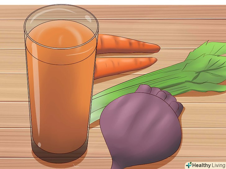Приготуйте виводить токсини овочевий сік.видавіть сік з одного буряка, одного огірка і чотирьох середніх морквин. Змішайте видавлені соки і випийте отриману суміш.- Щоб досягти бажаних результатів, випивайте по склянці (250 мілілітрів) сокової суміші двічі на день. Зберігайте залишився сік в холодильнику.