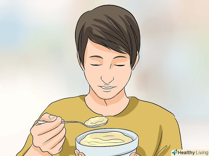 Їжте ферментовані молочні продукти.ферментовані молочні продукти, такі як йогурт і кефір, містять живі культури бактерій. Ці бактерії допомагають організму розщеплювати їжу і як слід перетравлювати її. Йогурт може допомогти вам, якщо проблеми з травленням викликані наступними причинами:[14]- У вас синдром роздратованого кишечника.