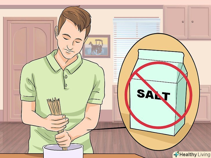 Для запобігання затримки води в організмі знизьте споживання солі.вживання великої кількості солі підвищує спрагу, в результаті чого рідина затримується в організмі, щоб забезпечити електролітичний баланс. Якщо ви часто відчуваєте спрагу після їжі, подумайте про те, щоб їсти менше солі. Вживайте таких заходів:[15][16]- Не досолюйте страви під час їжі. Якщо у вас є така звичка, спробуйте прибрати сільничку зі свого обіднього столу.