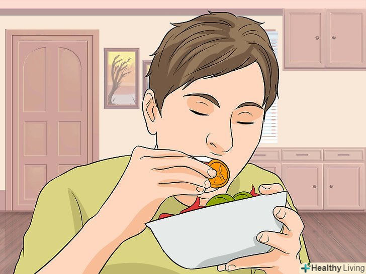 Харчуйтеся більш дрібними порціями, щоб знизити ризик запору.при запорах фекалії не проходять належним чином через травну систему. Це означає, що вони затримуються в кишечнику, де відбувається бродіння, і тим самим підвищують газоутворення. Крім того, фекалії можуть перешкоджати виходу газів.[18]- Їжте менше, але частіше, щоб ваша травна система постійно працювала, але при цьому не відчувала перевантажень. Спробуйте менше їсти в години основного прийому їжі і злегка перекушуйте між сніданком і обідом, а потім між обідом і вечерею.
