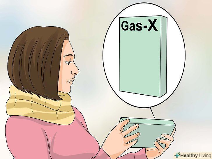 Спробуйте приймати препарати з Симетиконом.вважається, що ці кошти допомагають подрібнити великі бульбашки газів в травному тракті і полегшують їх вихід. Хоча дані препарати часто використовуються, їх ефективність не була доведена науково. Якщо ви вирішите приймати подібні ліки, ознайомтеся з вказівками щодо застосування і дотримуйтесь їх. Симетикон міститься в наступних препаратах:[3]- Дисфлатил