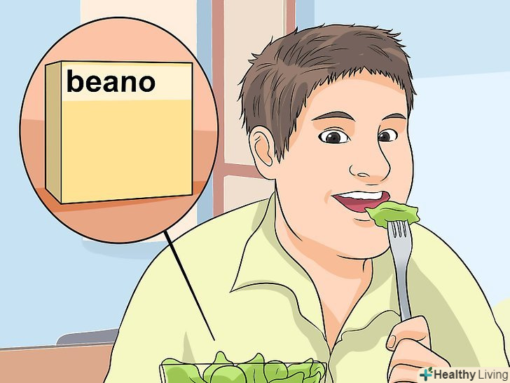 Додавайте препарат Беано в їжу, яка призводить до підвищеного газоутворення.якщо ви любите їсти квасолю, качанну капусту і брокколі і не хочете відмовлятися від цих продуктів, спробуйте використовувати Беано. Це засіб містить ферменти, які допомагають організму розщеплювати їжу без виділення великої кількості газів.[4][5]- Препарат Беано можна придбати в аптеці. Він випускається у вигляді таблеток і драже.